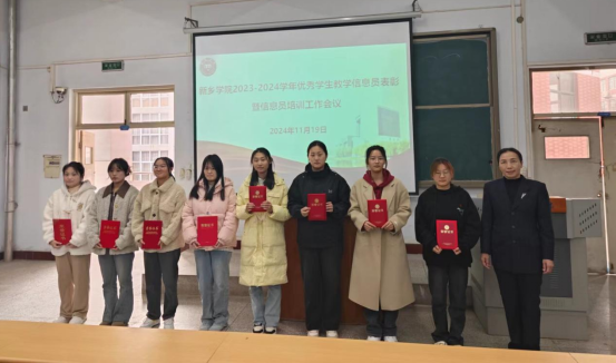 会议组织参会学生教学信息员学习了《新乡学院学生教学信息员管理办法》,使大家进一步明确自身定位和工作职责,了解工作流程,为做好信息员工作奠定基础。会议表彰了2023-2024学年优秀学生教学信息员并颁发了荣誉证书。