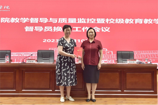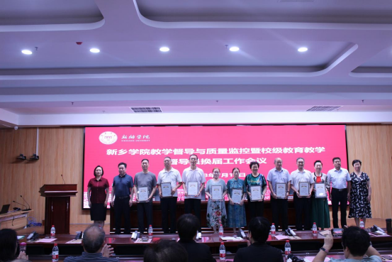 校领导为第四届校级教育教学督导员颁发了荣誉证书并合影留念;王天云宣读《关于聘任新乡学院第五届校级教育教学督导员的通知》;尹新明为第五届校级教育教学督导员颁发聘书并合影留念。朱利娜教授、张丽伟教授分别代表第四届、第五届校级教育教学督导员发言,其中既有尽心尽力、克服困难、不辞辛劳的工作经验;也有尽职尽责,奋发有为,做好督导工作的情怀与决心,表达了对学校高质量发展的共同期盼。