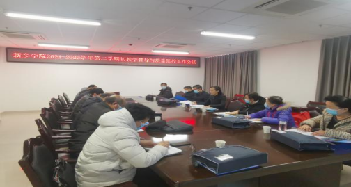 2022年2月25日上午,在领导班子布置带领、全体工作人员积极配合下,教学督导与质量监控办公室顺利组织召开了“新乡学院2021-2022学年第二学期初教学督导与质量监控工作会议”,全体督导员、教学督导与质量监控办公室全体人员参加了本次会议。会议明确了本学期工作思路与主要工作内容,提出了工作要求。此次会议的圆满召开,展现了学校能力作风建设年活动开展以来,教学督导与质量监控办公室全体人员各司其职,主动作为的工作态度和良好的精神状态与工作风貌,为本学期教学督导与质量监控工作的顺利开展奠定了良好的基础。