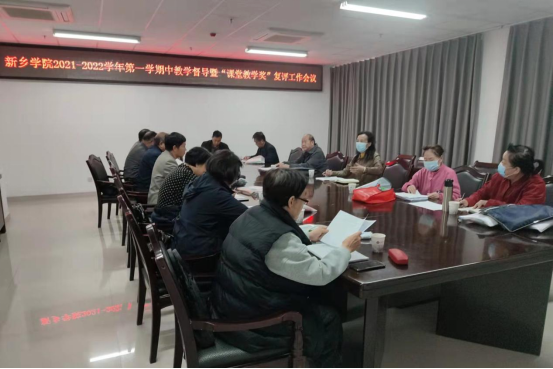 2021年11月4日上午,新乡学院2021-2022学年第一学期中教学督导暨“课堂教学奖”复评工作会议在图书馆南楼928会议室召开。学校全体教学督导员及教学督导与质量监控办公室全体工作人员参加了会议。会议由赵荷花主任主持。