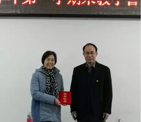 王选年副校长首先为在督导员岗位辛勤耕耘了十年荣退的平林英老师颁发荣誉证书。