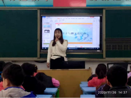 首先,督导队伍在新区小学校长李国胜、教务主任李素霞的带领下观摩了我校实习生的一节音乐课,非常欣慰地看到短短两个月间实习生在老师的辛勤指导下,已经比较熟练地掌握了教学的基本技能技巧,能够自如地驾驭课堂并与学生交流互动,落落大方,自然地引导学生遨游音乐世界。